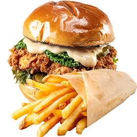 Bun, sauce chef, crudités, tenders de poulet ( poulet croustillant) + Frites.